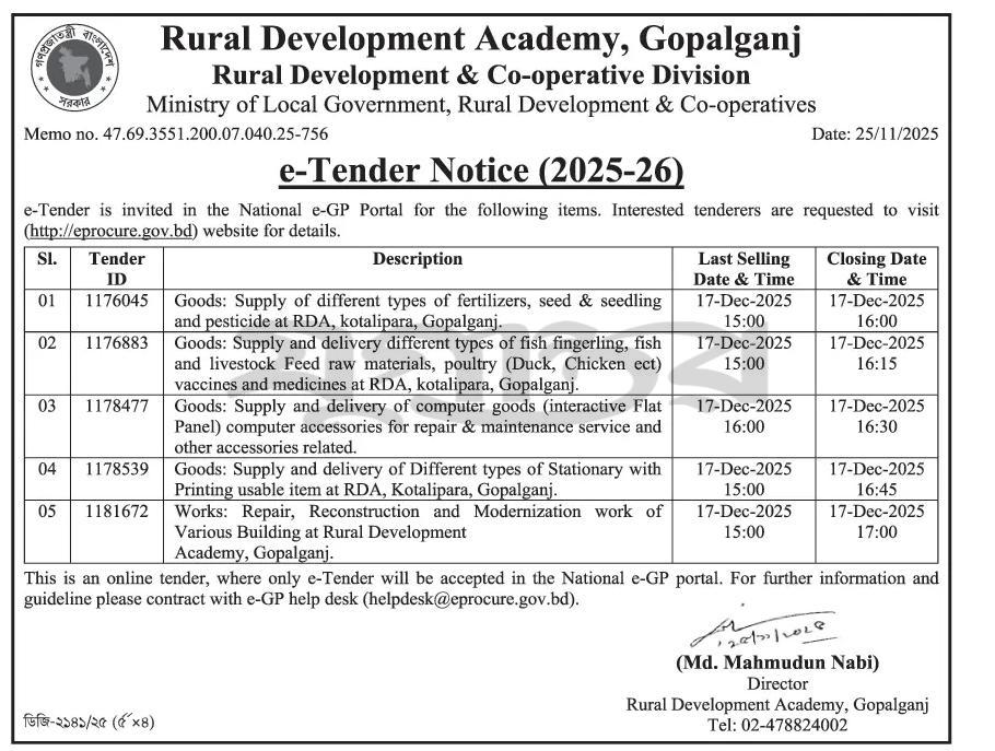 আরডিএ, গোপালগঞ্জ -এর পরিচিতি